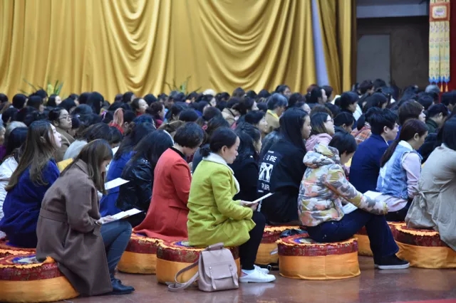 接着,在亦果法师庄严声音的引导下,各位信众顶礼三拜、忏悔业障并发大宏愿。