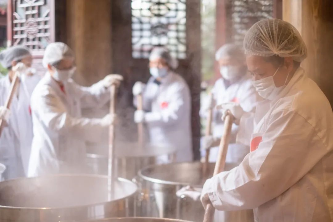 据成书于1710年的《慈笃语录》收录,文殊院开山祖师慈笃禅师在腊八节时上堂讲法,是宣扬腊八节文化精神的重要民俗活动之一。语录中还提到,当时的仕宦官绅纷纷参与文殊院腊八节庙会的祈福供佛、奉施腊八粥等民俗活动。它奠定了文殊院一开始就对此民俗庙会十分重视的基础。之后的第十五代方丈禅安和尚住持文殊院时期,仍持续宣扬腊八文化活动,以腊八粥为方便,积极教化社会民众,这在成都文化名人“五老七贤”之一的方旭诗中有所记载。